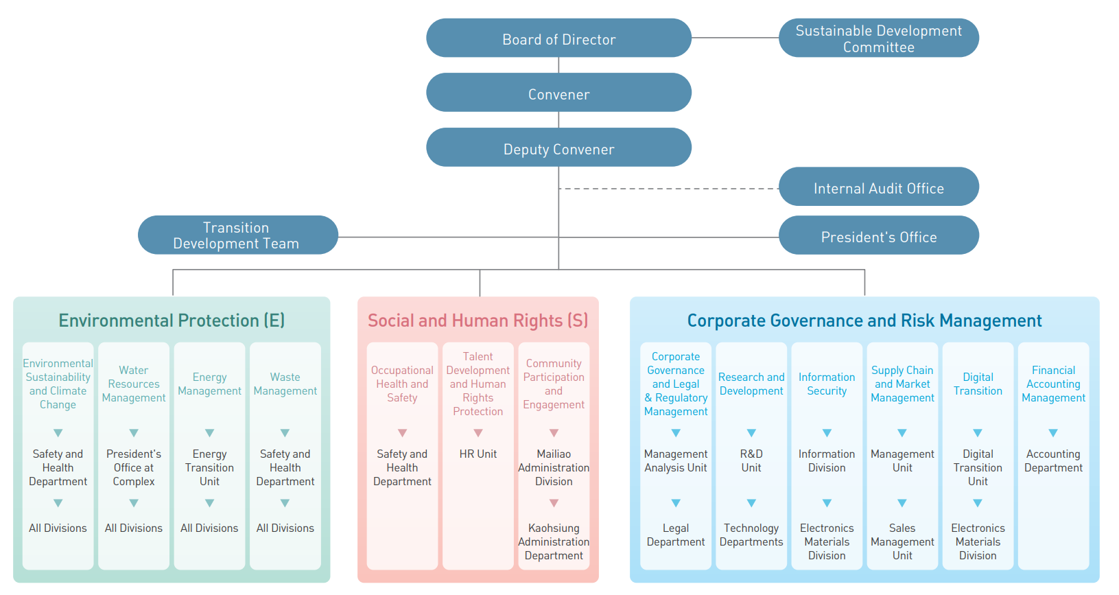 In May 2022, the Board of Directors approved the establishment of the Sustainable Development Committee to promote the achievement of sustainability goals related to environmental protection, social responsibility, and corporate governance, thereby strengthening its functions and management mechanisms.