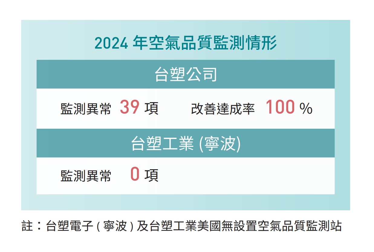In order to implement environmental protection, FPC regularly adopts optimal production technologies and other forms of pollution control systems, which has enabled us to achieve pollution control results that have surpassed national standards and are on par with the performance of global optimization standards. In addition to ensuring that various pollutants comply with environmental protection regulations, we have also continued to promote air pollution reduction projects.