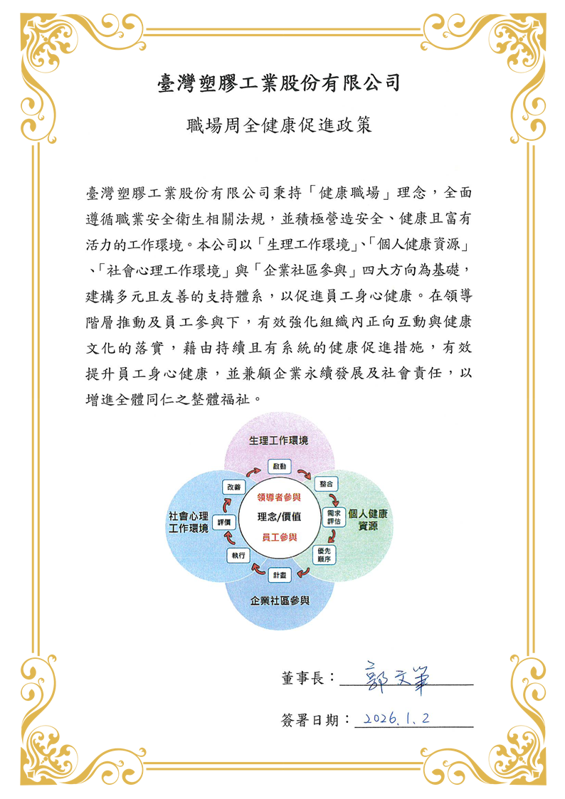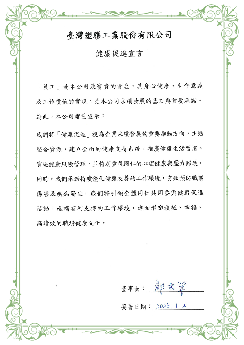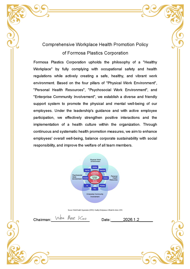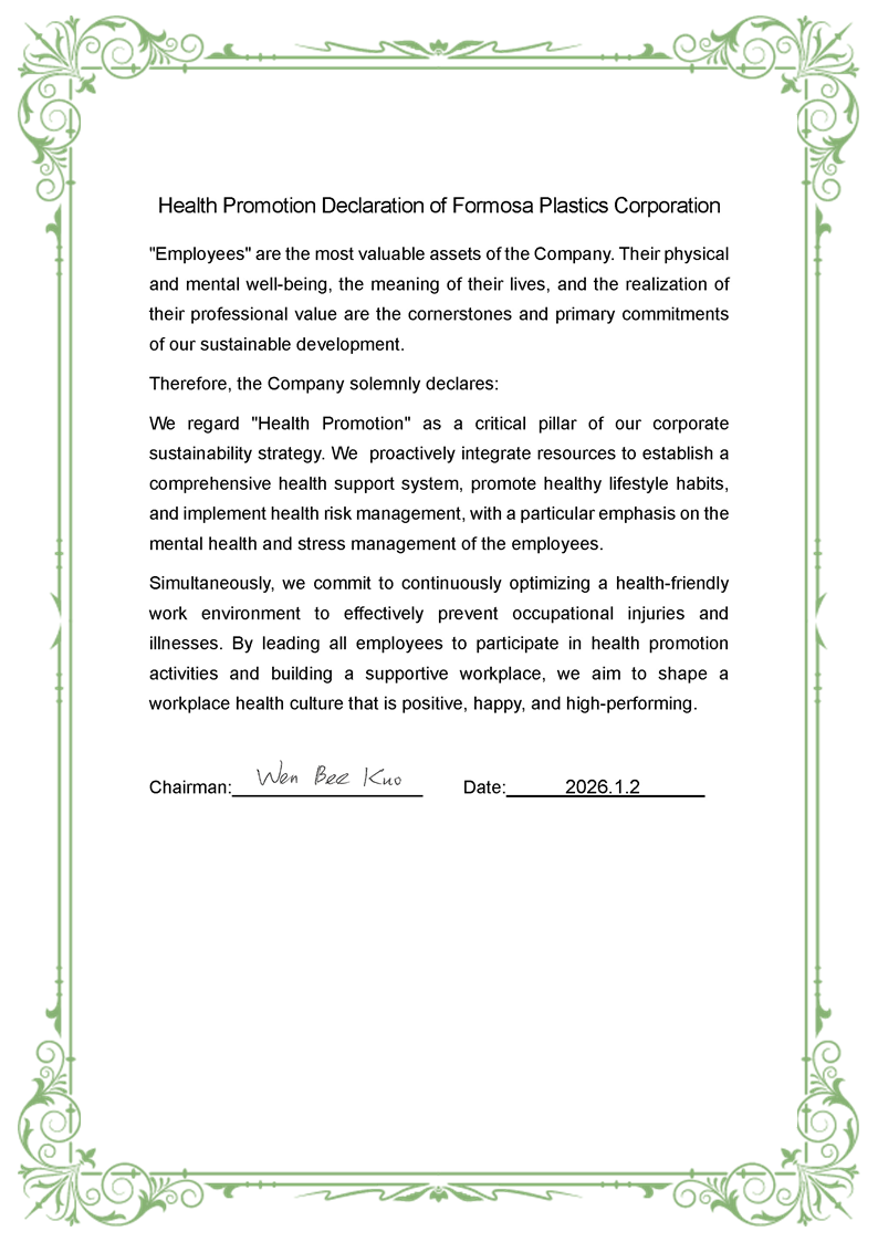 In addition, FPC implements preventive medicine and disease prevention and strengthens employees' knowledge of health to achieve the goal of healthy life and health promotion. FPC has purchased the 'ie Health Instrument' to provide free measurement of blood oxygen, electrocardiogram, blood pressure, weight, and body composition for employees. The resident nurse compares measurement data, assesses health risks, and provides health education to manage the health conditions of employees and further urge upon employees personal health improvement. The resident nurse makes referrals whenever necessary and follows up the progress of improvement. Employees may also check their measurement data through 'ie Health Instrument' as needed to understand their body composition and health conditions.